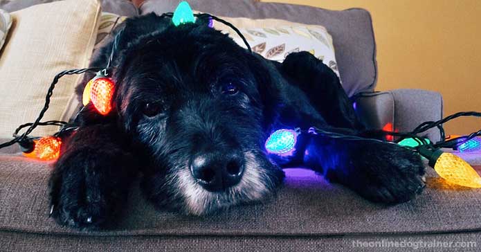 Most dogs won’t bother a strand of lights—especially if they are wound around a Christmas tree or are used to decorate the exterior of your home.