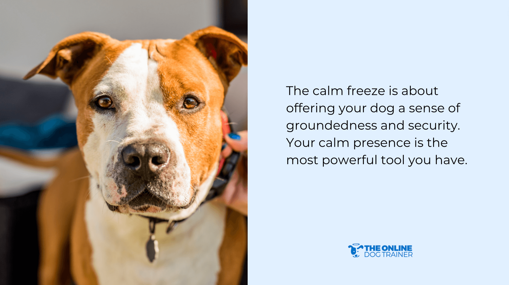 - The calm freeze is about offering your dog a sense of groundedness and security.