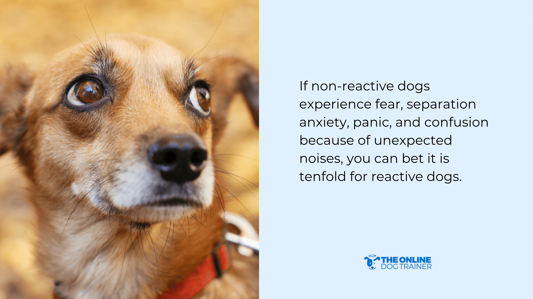 Most of the time, a dog's fear of fireworks stems from reactivity. If non-reactive dogs experience fear, separation anxiety, panic, and confusion because of unexpected noises, you can bet it is tenfold for reactive dogs.