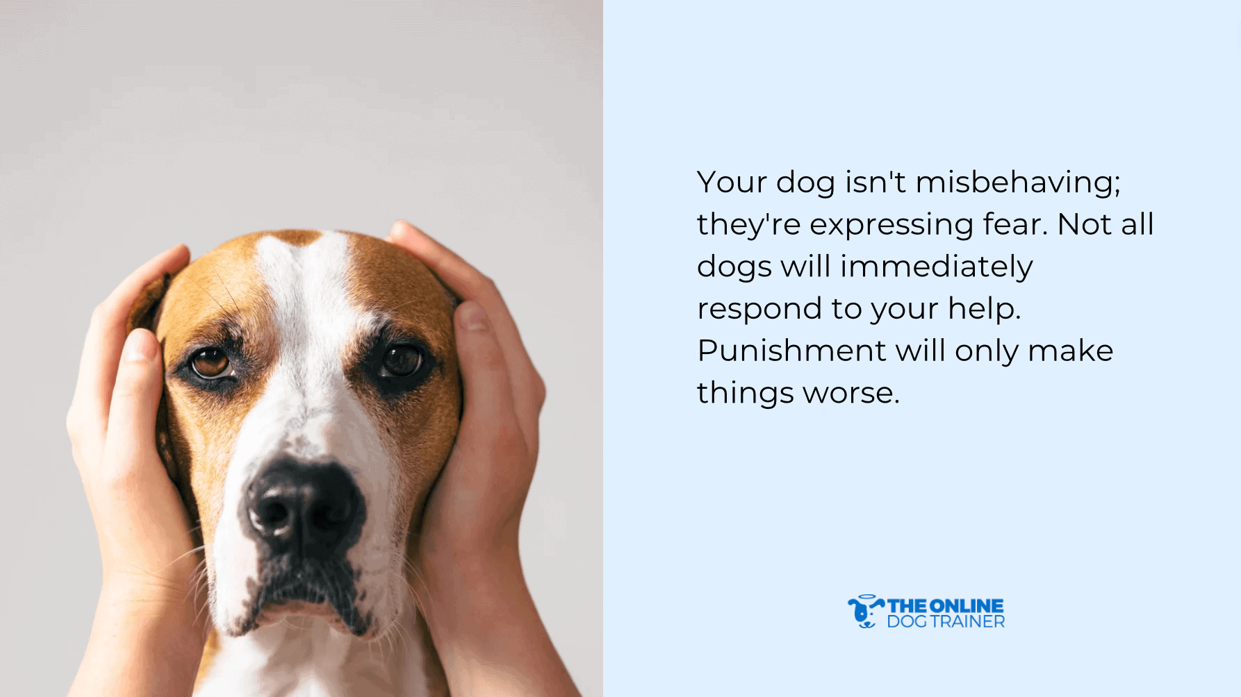 - Don't Punish Fearful Behavior: Your dog isn't misbehaving; they're expressing fear. Not all dogs will immediately respond to your help. Punishment will only make things worse.