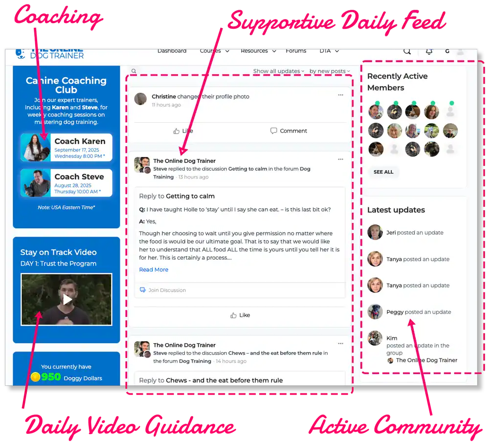 Your free training library is only one part of what makes the Canine Coaching Club so powerful.