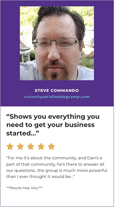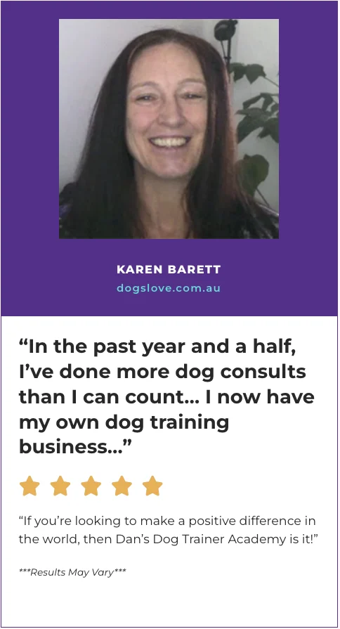 “That’s how confident I am that my Dog Trainer Academy techniques and methods will work for you and will help establish a fulfilling and rewarding career as a professional dog trainer.” ~ Doggy Dan