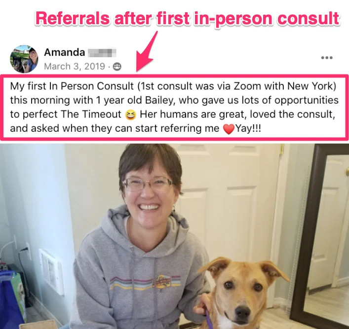 Empowering the owner to train the dog, with a method that gets PERMANENT results, means you won’t have to do repeat visits—meaning more time for new clients!