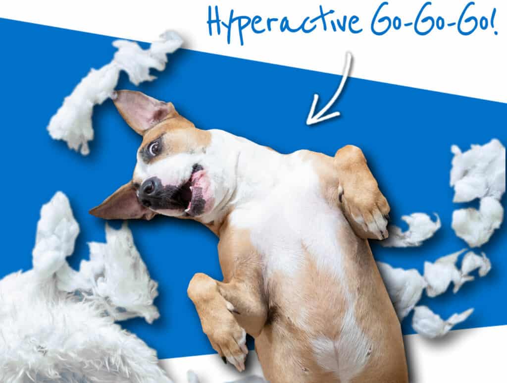 - Hyperactivity: A hyper dog is no fun to be around and it can be extremely stressful for the dog too. Putting these simple steps in place will give your dog the message it's okay to switch off.