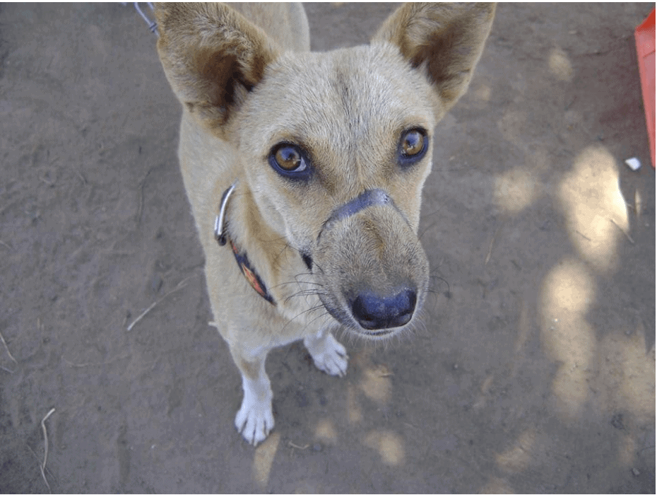 After getting her muzzle caught in a snare trap, she was thought to be a poor hunting dog and no longer worthy of feeding. She was relinquished by the family after our CDP heard about her situation and requested that she be donated to our program.